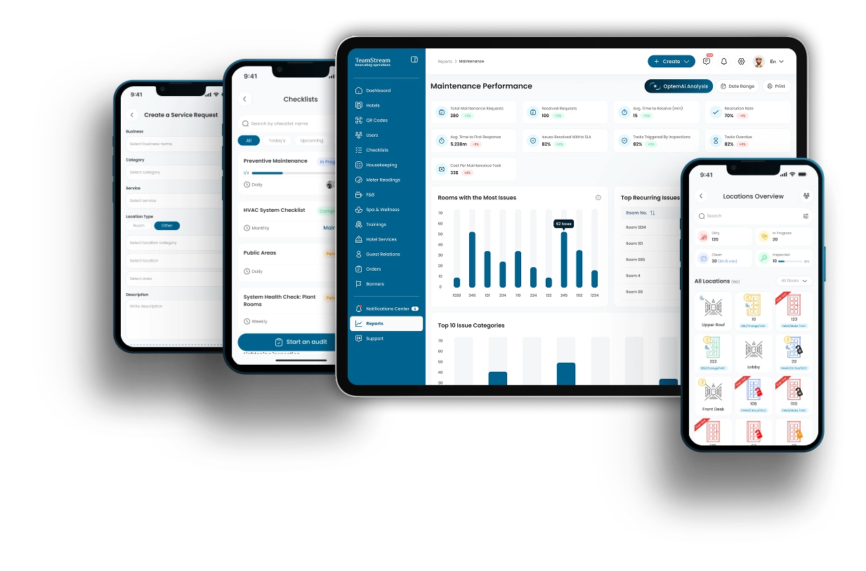 We connect front office, housekeeping, maintenance, and management on one real-time platform.