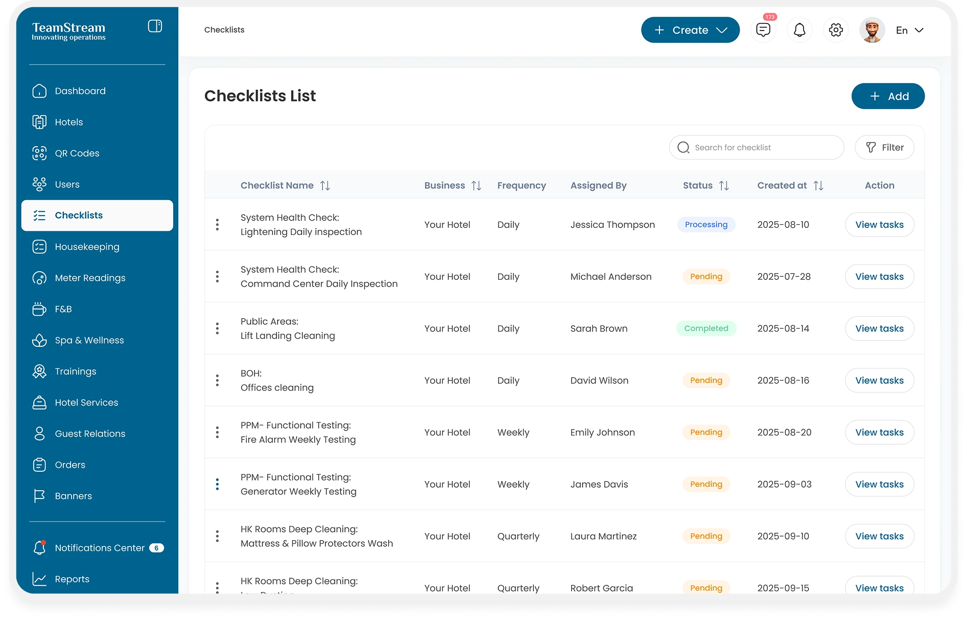 Digitize your daily SOPs to ensure strict compliance. Utilize structured digital workflows and supervisor reviews to maintain perfect quality across all hotel daily operations seamlessly.