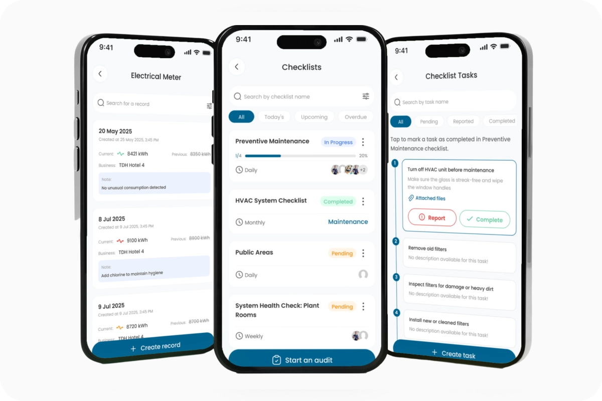 Through mandatory digital checklists. Managers can attach specific checklists to daily rounds, such as public area inspections or preventative maintenance. Staff must complete them digitally, creating a permanent, auditable timeline of compliance.