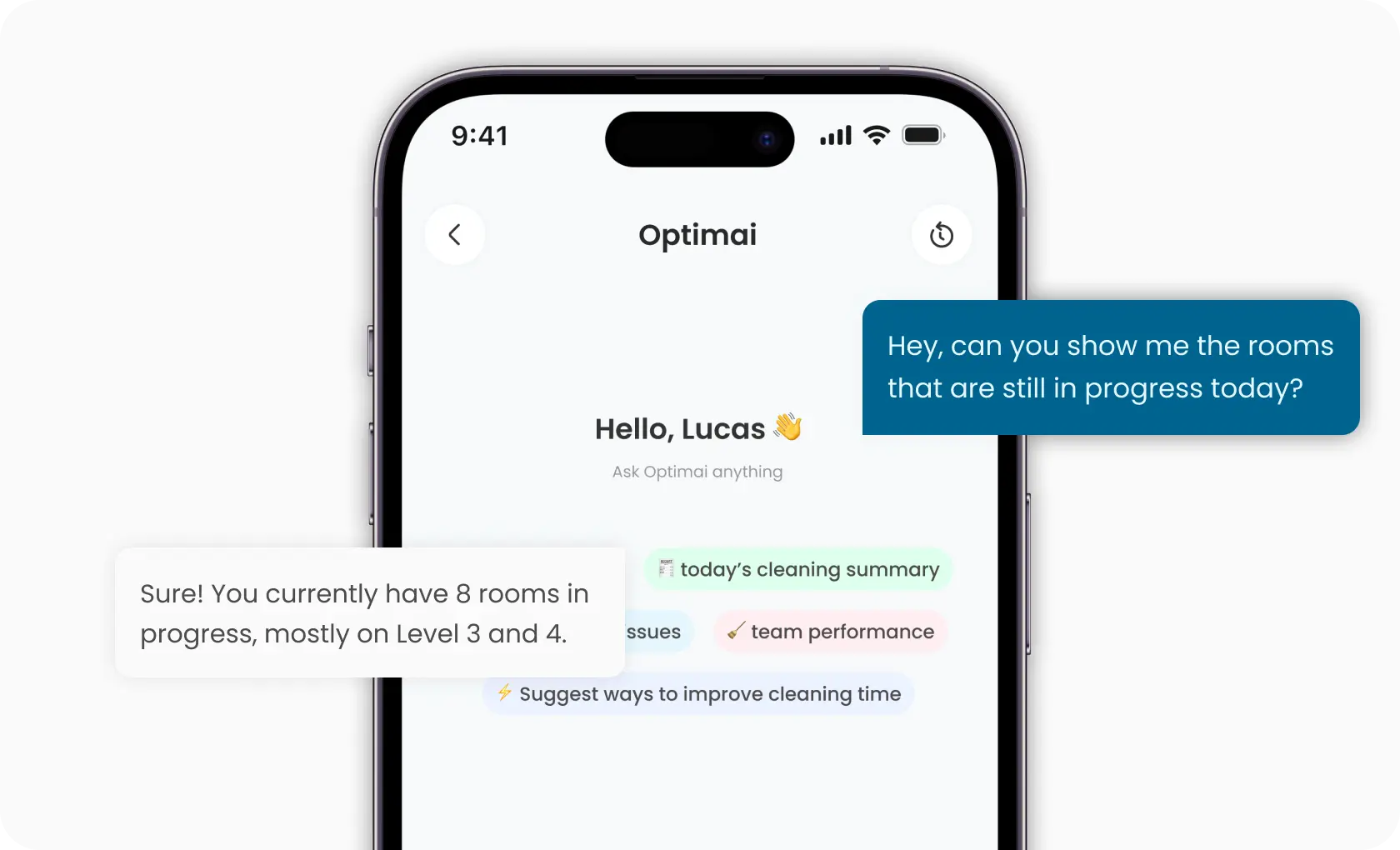 OptemAi is your always-on expert. Managers can ask questions about staff productivity, service trends, or guest patterns and get clear answers.`